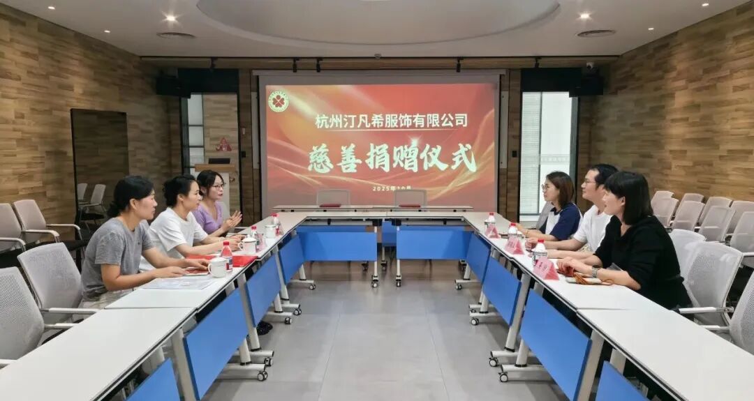 10月17日,杭州汀凡希服饰有限公司签约捐赠仪式顺利举行,区慈善总会副秘书长滕晴、办公室主任郑文霞,杭州汀凡希服饰有限公司总经理彭锡江,设计总监吴沙等代表共同出席。